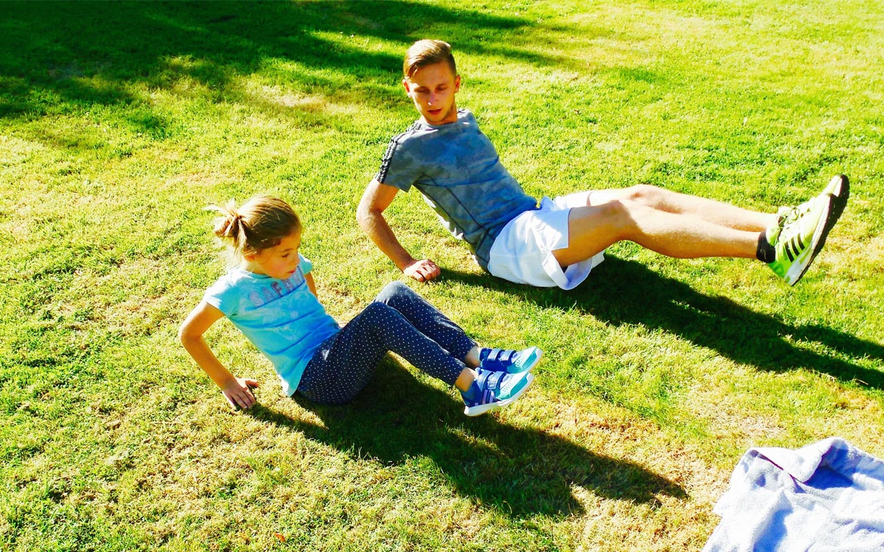 Heute liegt mir auch viel an Schwimmen, Volleyball, Klettern, Skateboard-, Inliner- und Fahrrad fahren.